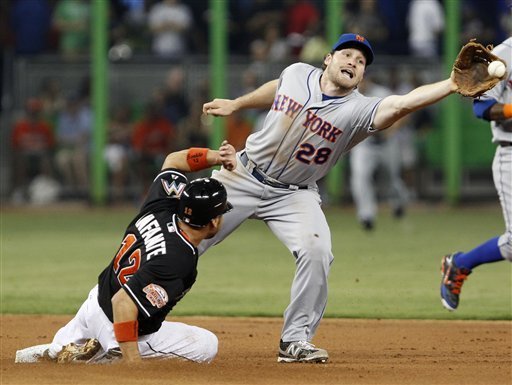 Unfortunately, New York’s bullpen didn’t fare much better than Miami’s. Jose Reyes reached on an error when first baseman Ike Davis booted an in-between hop on a routine ground ball induced by Bobby Parnell. A perennial thorn in the Mets’ side, Omar Infante, followed that up with an RBI double into the right-center field gap. Parnell just managed to escape the inning with the lead intact, thanks to some help from Tim Byrdak.